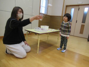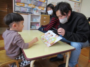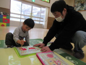 1月29日(木)にさくら組の保育参観がありました。 親子で一緒の朝の会では、お家の方と一緒にいることがうれしくて、朝の歌・雪だるま・十二支の歌を元気に披露し、笑顔を見せていました。