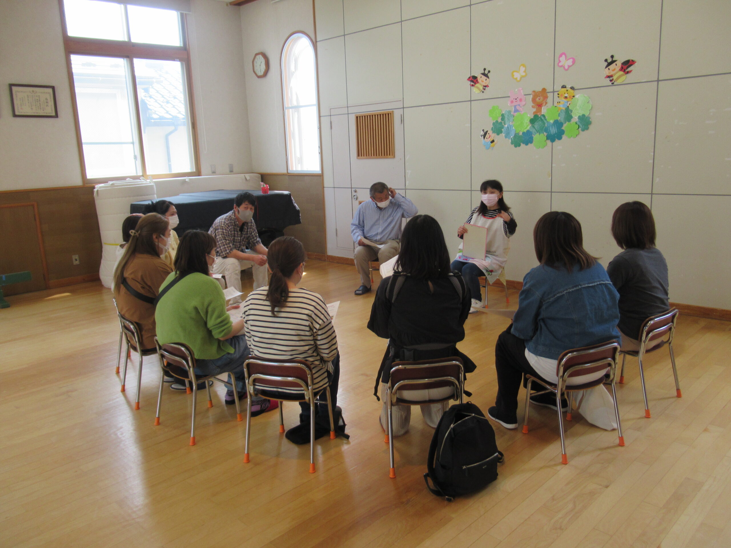 5月15(木)さくら組の懇談会がありました。 自己紹介ではお子さんが今楽しんでいること、ご家庭での様子をお話して頂き、和やかに懇談することができました。その後は、進級してからの子どもたちの姿や2歳児クラスでの取り組んでいくことをお話しをさせて頂きました。