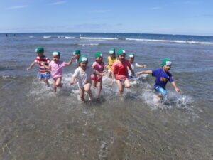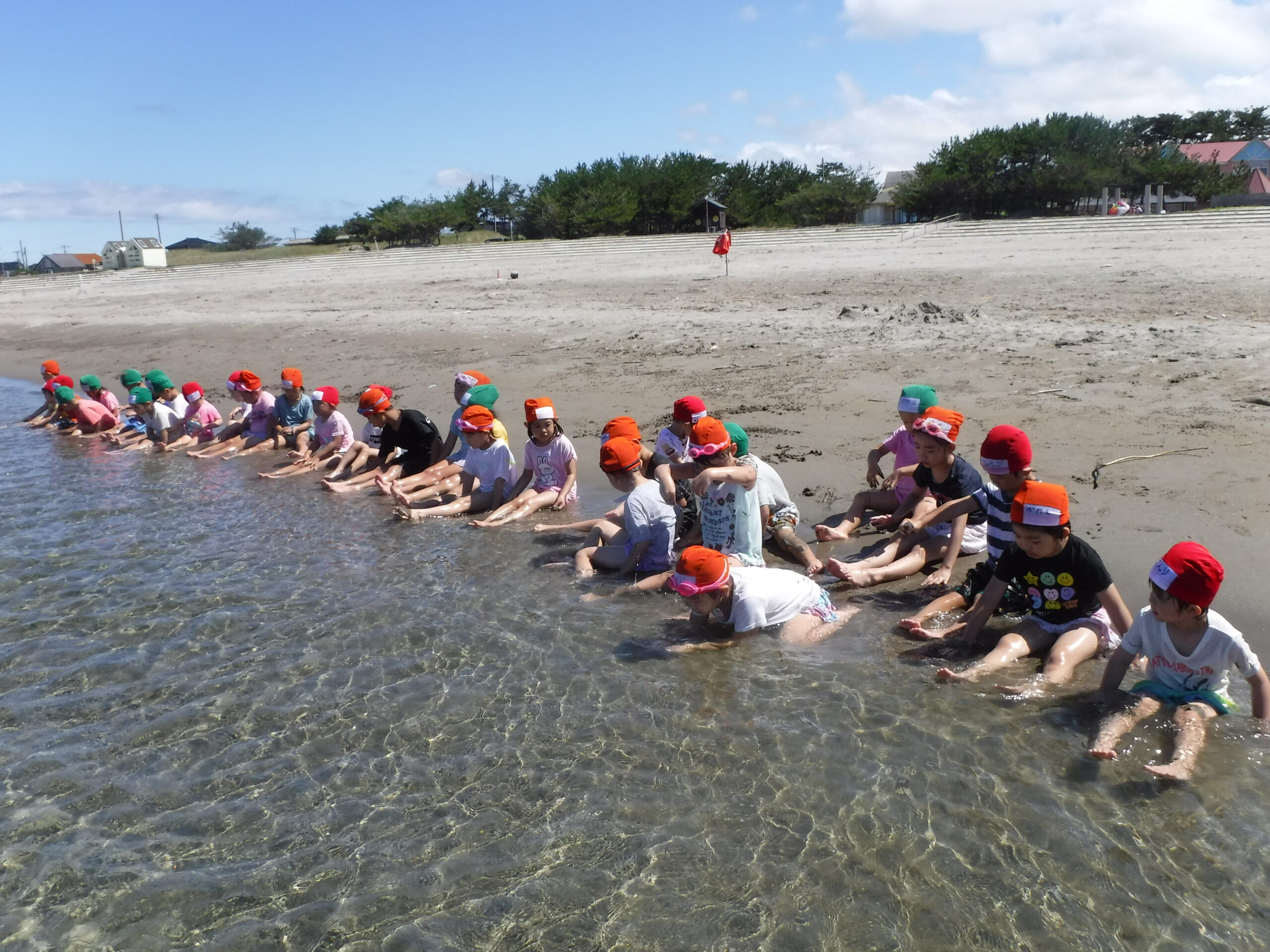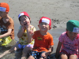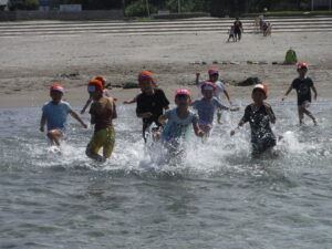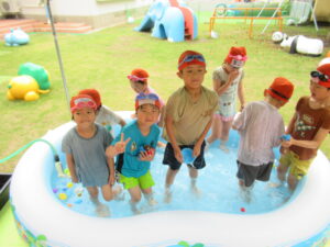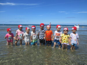 7月にプール開きをしてから、晴れた日は園庭で水遊びやプール、大間海水浴場で海水浴を楽しみました。