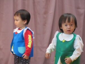 たくさんの拍手を頂きありがとうございました。お家の方の姿にとても喜んでいた子どもたちでした。発表会後もお部屋で衣装を着て、発表会ごっこを楽しんでいます。これからの成長も楽しみですね。