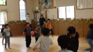 3月はひなまつりと誕生会の行事が一緒に行われ、最初にひなまつりのお祝いをしました。