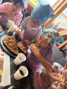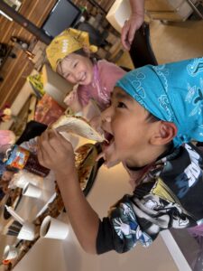 「すごいチーズのびる~」「口の中でとろけてる~」「自分だけの特別な味だね!」と、子どもたちの表現の豊かさに成長を感じますね。
